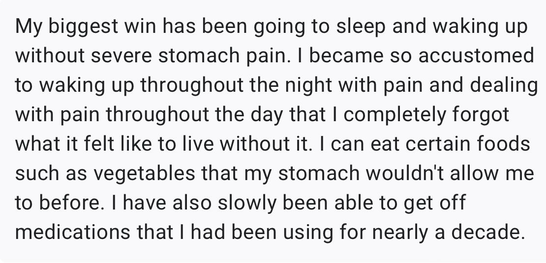 - Saying goodbye to bloating, reactions and anxiety around food